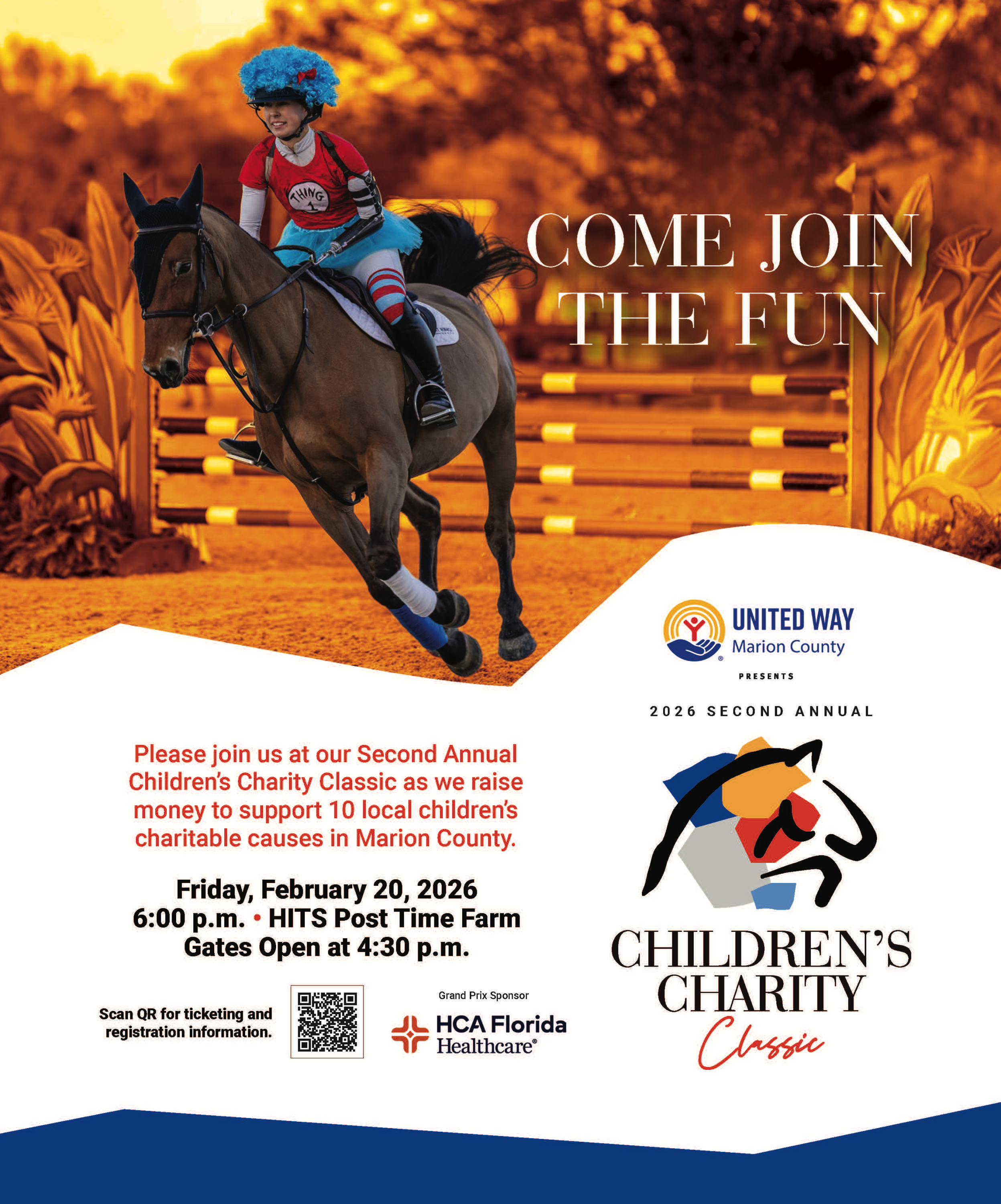 Join us for a vision for extraordinary change! The United Way of Marion County is hosting the second annual Children's Charity Classic on February 20, 2026, to be held at HITS Post Time Farm. For more information click on the link: https://www.uwmc.org/childrens-charity-classic or contact the United Way at 352-732-9696. Gates open at 4:30 pm